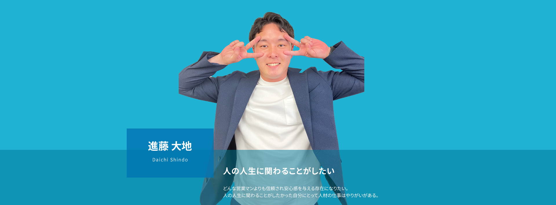教員になるという夢を持つ中で、介護施設での実習がありました。そこで感じたのは介護の仕事の大変さだけでなく人材不足も強く感じました。自分一人が現場に入っても大した活躍はできないと思い、働きたいと思っている方と働いてもらいたいと思っている企業との架け橋になりたいと思いました。人の人生に関わることがしたかった私にとって人材の仕事はやりがいがあります。