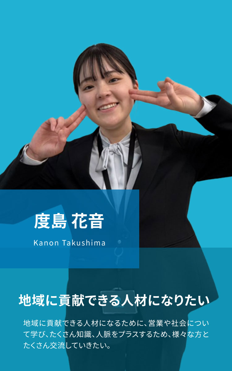 将来は九州に戻って、地域に貢献できる人材になりたいと思っているため、まずは営業や社会のことについてたくさん知識を入れていきたいと思います!