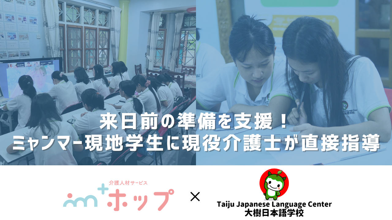 介護人材に特化した登録型派遣求人サービス『+ホップ』を運営する株式会社プラス・ピボット(本社:東京都渋谷区、代表取締役:山本 直生、以下 当社)では、特定技能事業の一環として、ミャンマー現地の日本語学校「大樹日本語学校」と連携し、現地学生に向けたオンライン授業「ホップ勉強会」を提供しています。