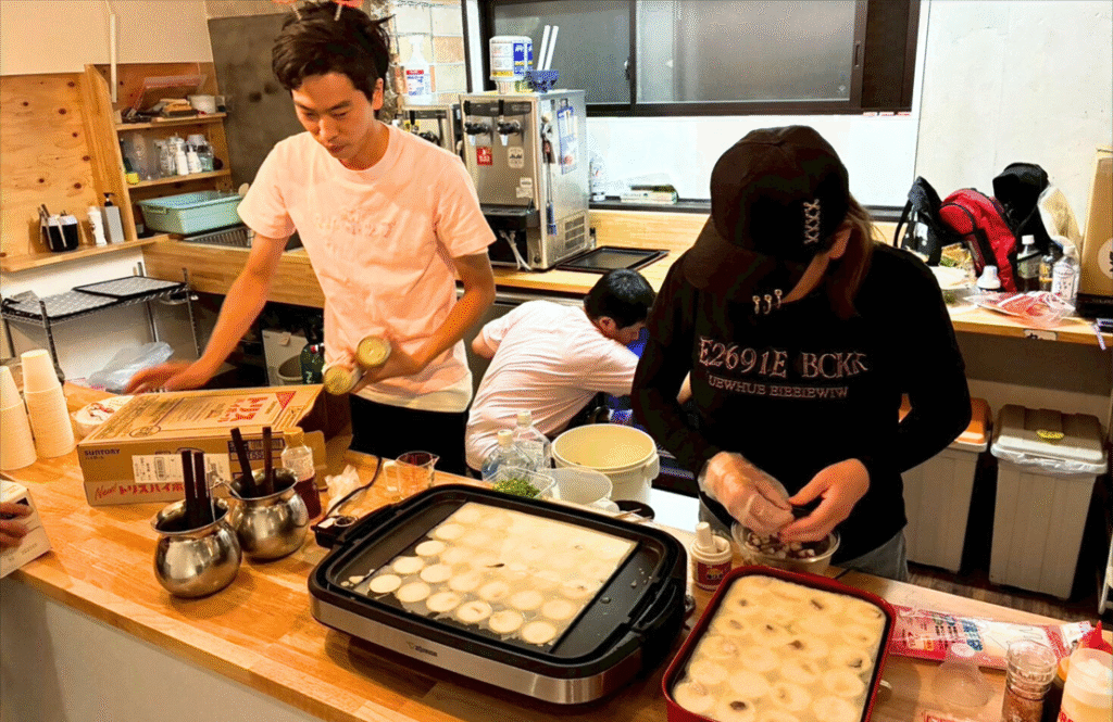 また、参加者の皆さんがすぐ会場を見つけられるように、ホワイトボードには手書きのウェルカムメッセージも。梅田オフィスの会場では、大阪ならではの「たこ焼き」も登場し、早くも仕込みの香ばしい匂いが広がっていました。