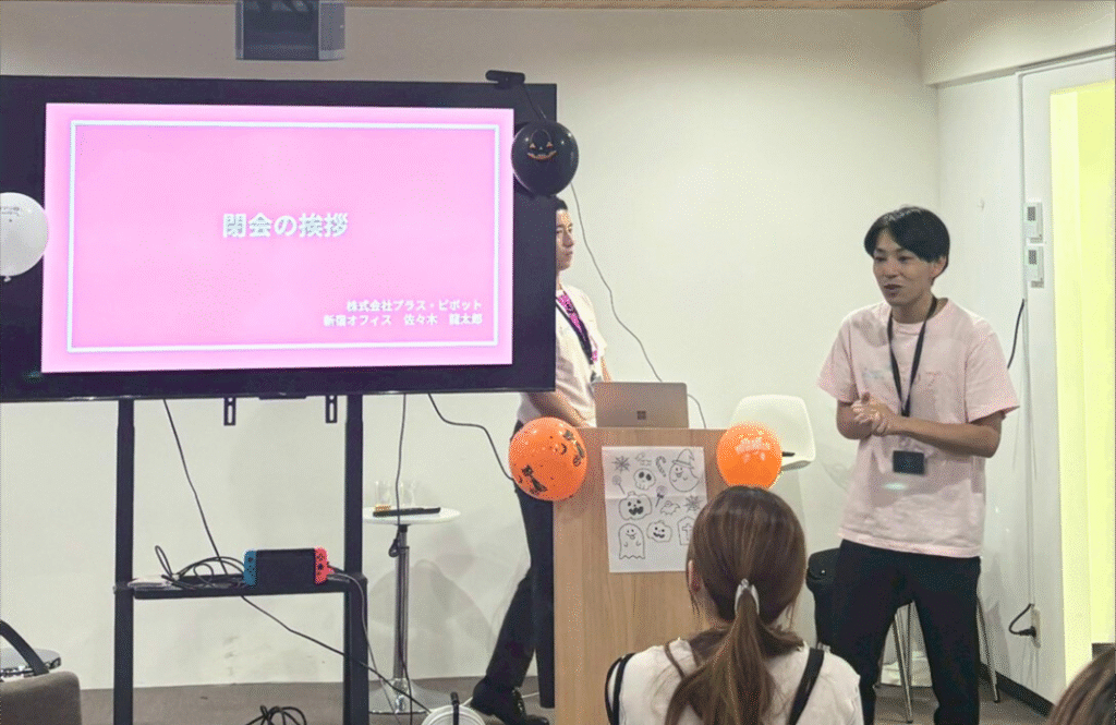 会場には、弊社社員が現地入りし、ドリンクやお食事を丁寧にセッティング。10月開催ということもあり、司会進行を担当する社員はハロウィンを意識した仮装の準備も進めていました!