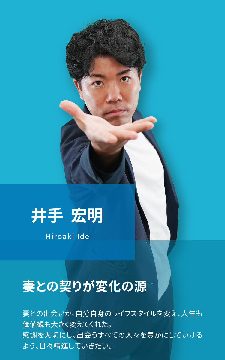 感謝とともに、大きくライフスタイルが変化しました。私が妻と出会い人生も価値観も大きく変化したように、出会う人々すべてに圧倒的な転換点を与えるべく日々精進していきたいです。
