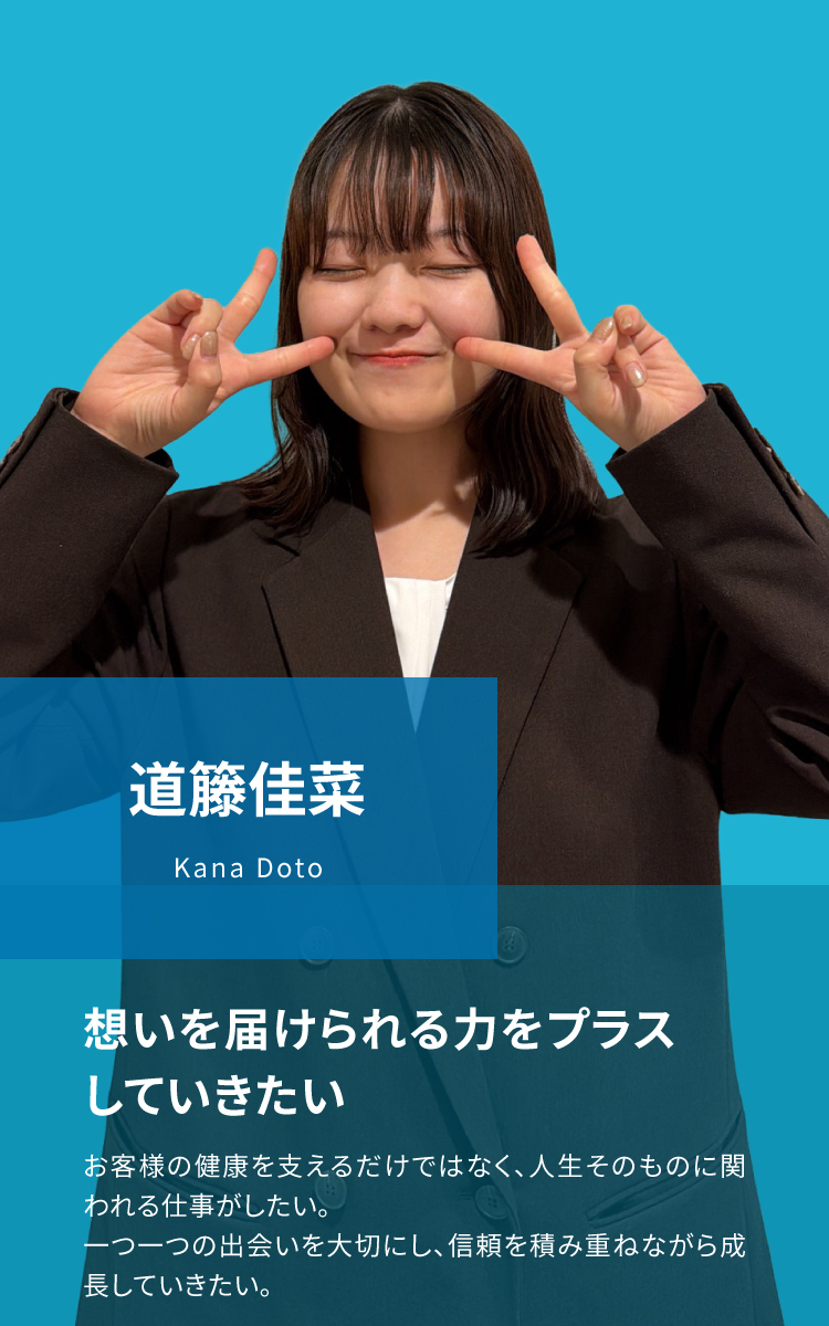 相手の気持ちを汲み取りながら、自分の想いも真っすぐ届けられる営業を目指しています。求職者の方や施設の方に安心してお話してもらえるよう、一つ一つの出会いを大切にし、信頼を積み重ねながら成長していきます。