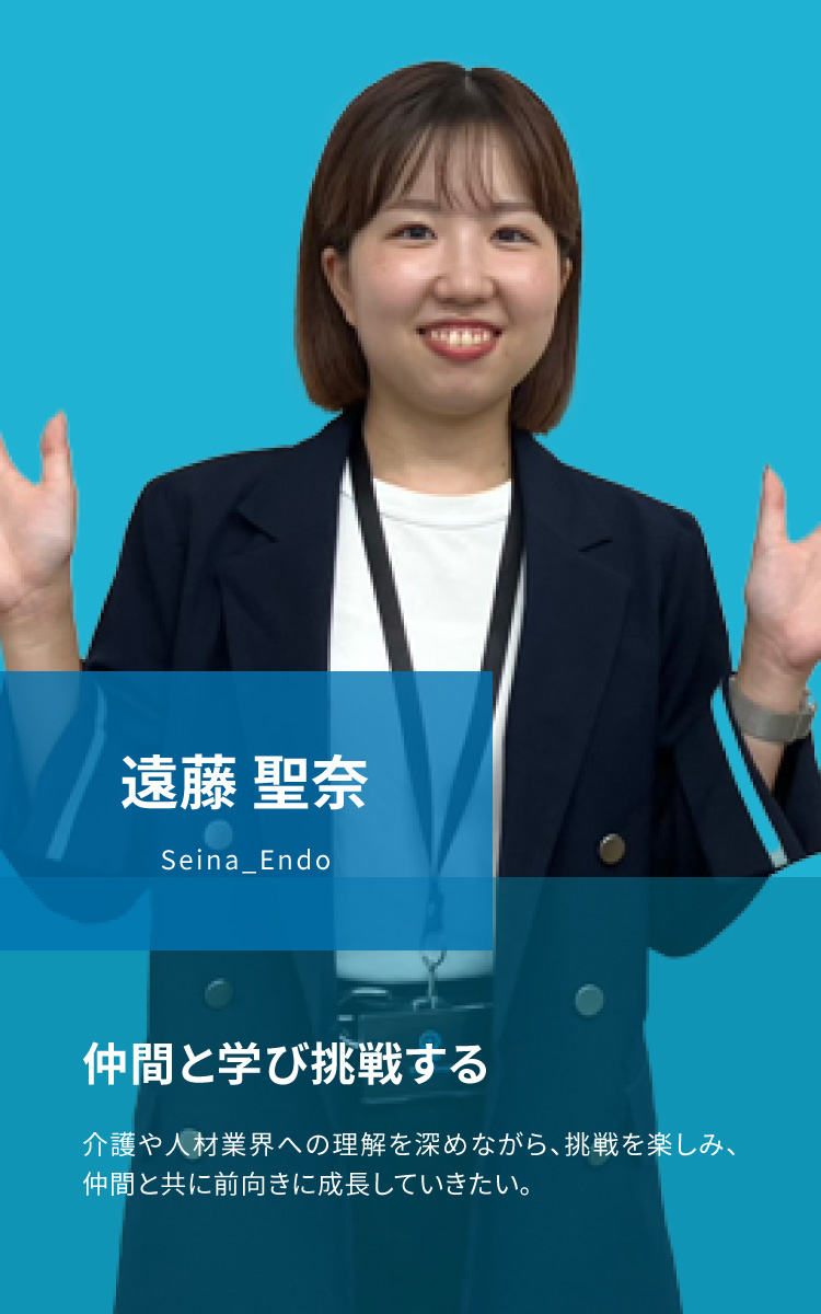 学びを積極的に吸収し、自分の力に変えていきながら日々の経験を積み、より的確に求職者や施設を支えられる存在へと成長していきたいです。