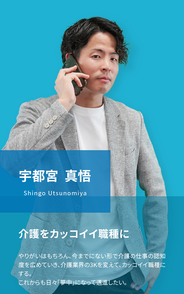 その為にスタッフ様の評価制度に変革を起こし、インフルエンサーによって介護の仕事に対する認知度を広めたり、やりがい等のプラスのイメージの訴求をしていきたいと考えています。