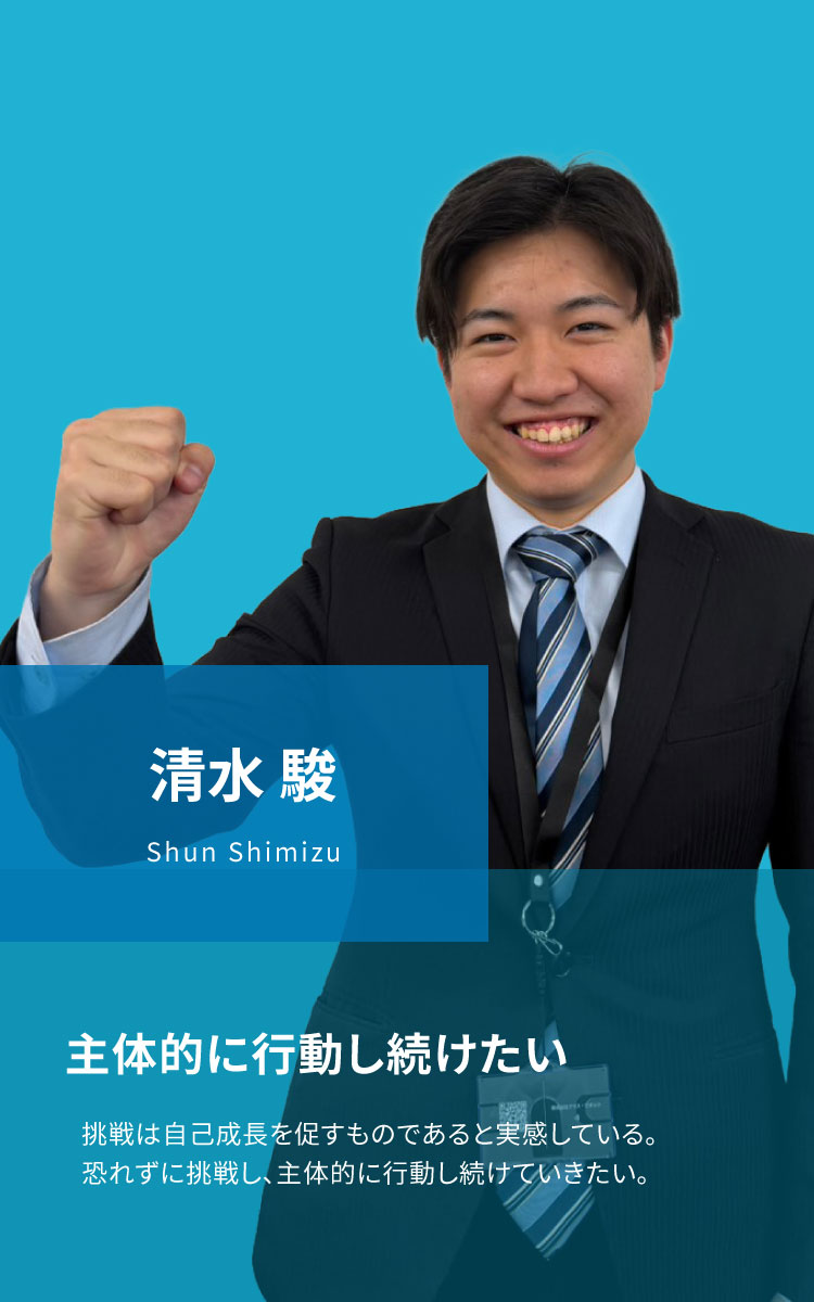 業界No.1を目指す中で、中枢を担う人材となるためにも、トライアンドエラーを重ねながら新規事業や新エリアの開拓に主体的に取り組んでいきたいと考えています。