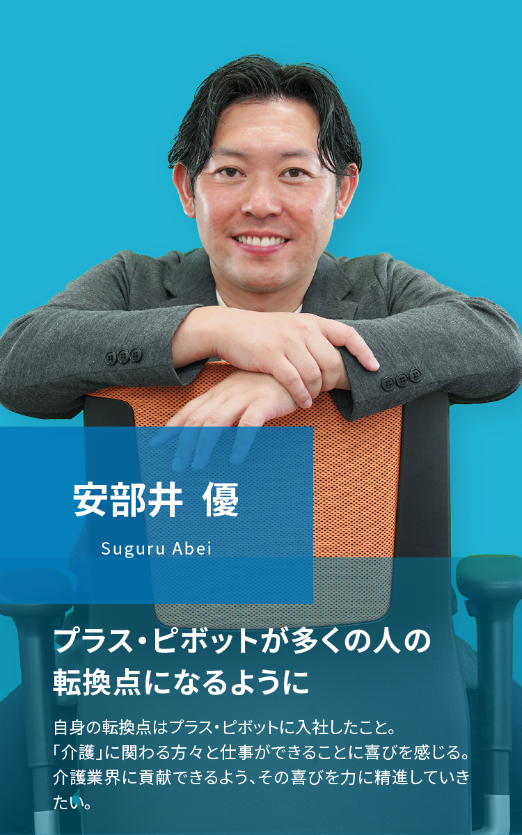 私の【転換点】は、プラス・ピボットに入社し、介護業界に関わることが出来た事です。
