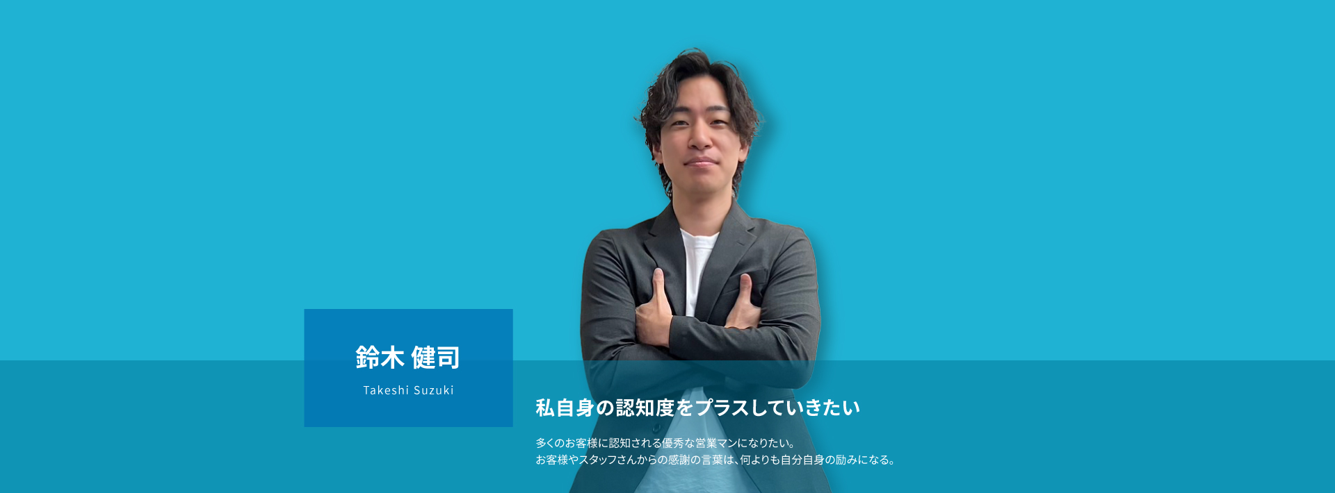 昨今、SNSなどインターネットが普及している世の中においてより『認知度』というものが重要視されている時代だと感じています。私自身も、営業としてお客様に認知していただくことの大切さを物凄く実感しており、多くのお客様に認知される=優秀な営業マンだと考えています。